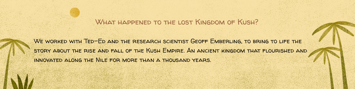 We worked with Ted Ed and the research scientist Geoff Emberling, to bring to life the story about the rise and fall of the Kush Empire. An ancient kingdom that flourished and innovated along the Nile for more than a thousand years.